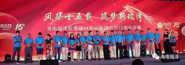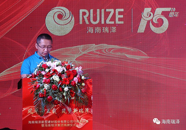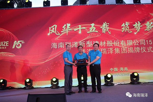 風華十五載,筑夢新瑞澤。2018年6月28日,海南瑞澤新型建材股份有限公司十五周年慶典暨海南瑞澤集團揭牌儀式在三亞瑪瑞納酒店隆重舉行。市委常委、統(tǒng)戰(zhàn)部部長陳正光、原三亞市政協(xié)主席趙普選、董事長張海林、董事馮儒、陳健富、毛惠清、孫令玲、公司高管、股份公司各部室負責人及代表、各分、子、托管公司總經(jīng)理、相關合作單位及十五周年忠誠員工等參加了此次活動。